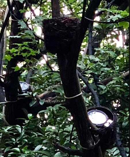 今年三月,公園在進(jìn)行點(diǎn)亮提升工程初期,增設(shè)了很多燈組,到了晚上,不同顏色的燈光交匯在一起,增加了南湖畔的夜景效果,看著漂亮得很。但是白天卻影響公園里的整體美觀,就設(shè)計(jì)采取了這種以假亂真的辦法,用“鳥巢”把一盞盞景觀燈給包裹起來,與周圍自然環(huán)境融為一體,讓住在樓房里的人們來到湖畔休閑納涼時,感受到一種貼近大自然的城市慢生活。沿著南湖一周,在綠化樹上搭建的這種“鳥巢”燈罩總共1萬多